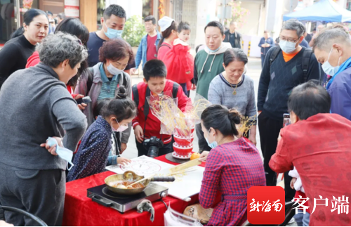 ?游客在海口看糖畫(huà)制作。海口市旅文局供圖