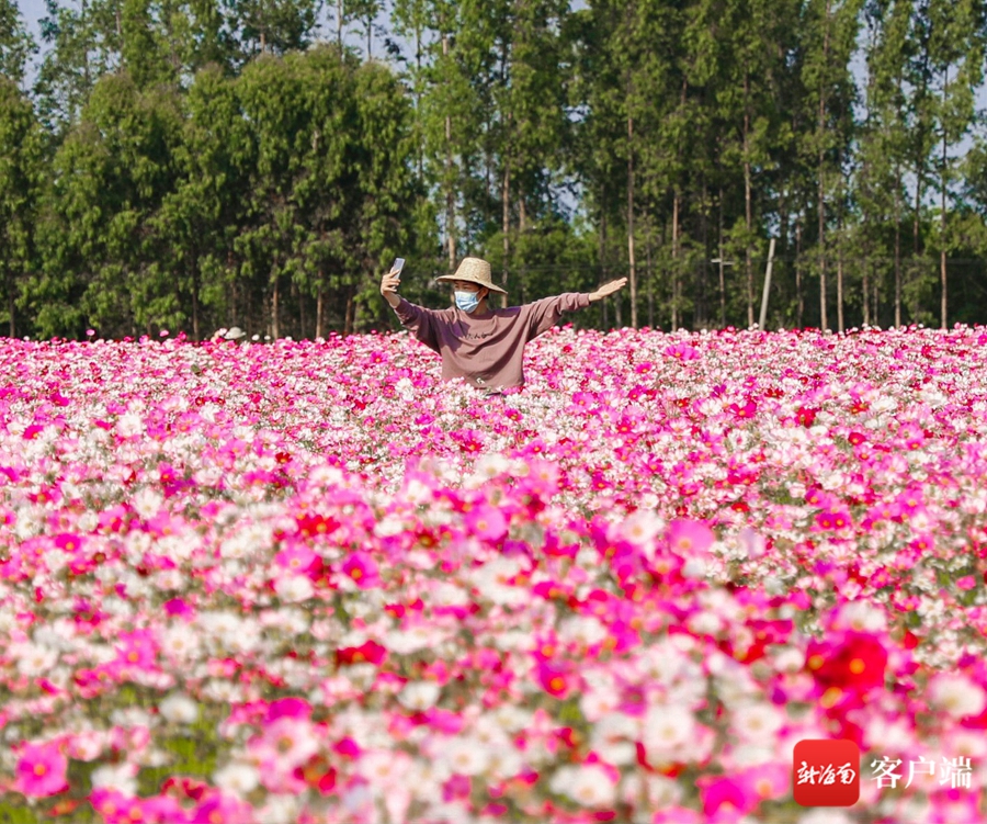 昌江十月田花海迎春綻放吸引游人“打卡”。記者 姚皓 攝