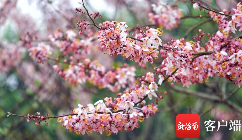 藍洋櫻花樂園位于儋州蘭洋鎮,當下正值櫻花綻開季節,該樂園內500多畝熱帶櫻花綻放枝頭,吸引廣大游客市民前來觀光。此次旅游文化節將橫跨整個熱帶櫻花花期,時間從3月持續至5月。