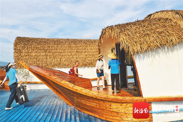 在陵水新村鎮海上疍家民宿,不少游客前來打卡游玩。海南日報記者 王程龍 攝